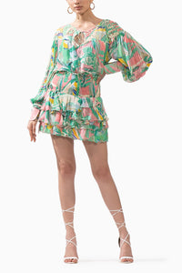 This mint & pink abstract printed top and skirt set made from chiffon and beautiful cutout chantley detail in shirt. The skirt featuring perfect fit & smocked waistband for a comfort fit.