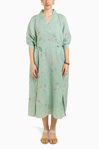 This graceful mint printed slip dress in linen features delicate embroidery details, adding a refined touch to its relaxed silhouette. The lightweight linen fabric ensures comfort and breathability, while the soft print and intricate embroidery create a perfect balance of casual elegance. Ideal for warm days or evening outings, this dress offers effortless style and sophistication.