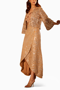 Elevate your style with our Gold Mirror Work Floral Bandeau Coord Set. Crafted from exquisite Mirrorwork, it offers a comfortable fit and timeless sophistication for your special occasions.