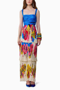 Featuring Missy Floral Print Three-Tiered Pleated Maxi Dress by Saaksha & Kinni, this elegant dress features a floral print with three-tiered layers and hand micro pleat detailing, offering a flattering, flowy silhouette. Perfect for a graceful, sophisticated look.