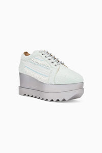 Our dreamiest pair of wedge sneakers! Dreamy, airy, and effortlessly chic—MIST ME Wedge Sneakers is your perfect partner for walking on clouds (or at least feeling like it!). Drenched in soft pastel hues, this pair is inspired by dewdrops glistening at dawn and the ethereal charm of misty mornings. The textured details and hand-embroidered accents bring a touch of magic, while the silver wedge gives you that effortless lift.Crafted in delicate woven textures and adorned with intricate embroidery, MIST ME embodies the art of timeless beauty. The artisans of Anaar take 30 hours to carefully construct this pair.