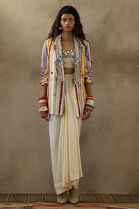 Composition: Jacket- Mushroom Twill, Blouse- Net and Silk, Skirt- Crushed Silk