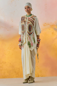 Composition: Gilet- Cotton Silk and Slub Satin, Kurta- Crushed Silk, Skirt- Crushed Silk