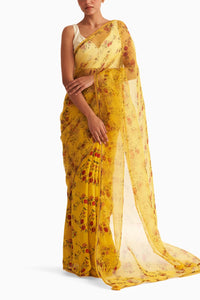 A beautiful dainty half cotton silk and half organza saree featuring our most loved anaar print. A perfect evening wear!