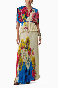Monica Floral Pleat Kaftan Blouse & Maxi Skirt