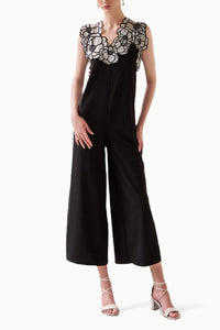 3D embroidered Applique flower jumpsuit. Oh so flattering for a polished night out.