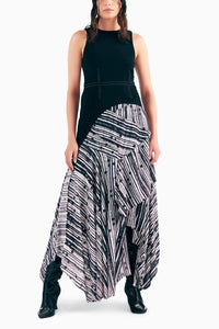 The Monochrome Braille Printed Deconstructed Dress combines modern style with tactile elegance. Crafted from a blend of cotton modal and textured crepe, this black-and-white piece features a unique Braille print, offering an artistic, bold statement with a sophisticated edge.