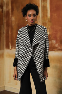 Monochrome Classic Houndstooth Knit Cape