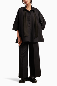 The Moon Co-ord Set is your perfect match when you have to be universally present, just in the right time. Easy to transition from AM to PM and from formal to casual settings, it comes with a shirt accompanied by a tie-up bow that can be worn as a mock scarf too over a pair of structured yet relaxed fit of trousers that are highly versatile (and effortless due to the inner pure cotton muslin half lining).                  ÂÂ