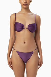 Perfect for sun-drenched escapes, twilight swims or a glamorous evening out. The Riviera balconette bikini top features underwired cups with soft gathering, offering structured support and a naturally lifted shape. Wide-set straps flatter the neckline, while the signature gold-tone center hardware adds a refined touch.