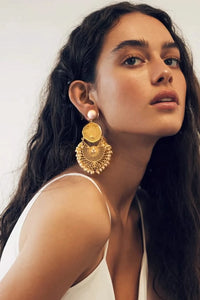 The MOR COIN PEARL JHUMKA from the Shakti Coin Collection elegantly merges tradition with modern style. Featuring the Lotus symbolizing purity and growth, the Peacock representing confidence and strength, and timeless pearls, these jhumkas celebrate cultural heritage with a refined touch. Embrace your Shakti—power that is uniquely yours.