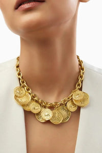 Channel the strength and grace of Indian heritage with our Shakti Necklace. The lotus coin symbolizes resilience and power, while the intricate peacock design adds elegance. Elevate your style and pay homage to the culture with this exclusive Mor Kamal Statement Chain.
