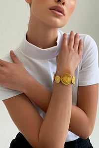 The MOR SHAKTI CUFF from the Shakti Coin Collection beautifully blends tradition with contemporary design. Featuring symbols like the Lotus, representing purity and growth, and the Peacock, embodying confidence and strength, this cuff is a celebration of timeless elegance and cultural heritage. Wear it as a powerful reminder that Shakti is not just power—it is you.