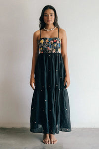 The Morjim Maxi is an elegant and versatile piece that features a hand-embroidered top, adding intricate detailing to the design. The tie-up back creates a flattering and adjustable fit, while the two-layered dress offers a beautiful flow and movement. This maxi dress combines craftsmanship and comfort, making it perfect for both casual outings and special occasions.