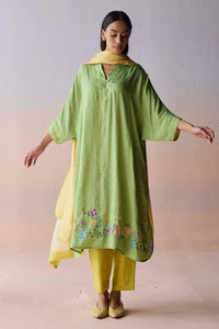 The Morning Whisper Kurta Set holds the hush of early hours, when light filters gently through leaves and the world feels tenderly awake. Its green tones echo the freshness of nature, quiet yet full of life.