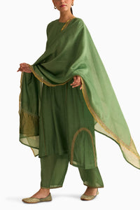 Colored in a emotive shade of green, embellished with gold dabka borders.