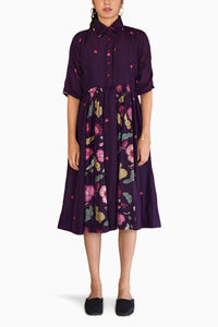 Our Mulberry dress is the ultimate statement maker, tailored in chanderi silk. With an all-over print placement, this collared dress is bold yet beautiful, with a half button-up placket and handcrafted buttons. It also has relaxed elbow sleeves & side pockets. A fully pleated skirt adds movement, with the play of prints in panels adding an edge to this ultra-feminine dress. It comes with a cotton slip. An ideal style for every day or for elegant occasions, pair with minimal accessories and let the dress do the talking.