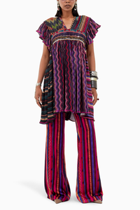 Featuring Multi Beyond Ken Nero Dress Set. Aseem Kapoor's ensemble in a captivating Multi color palette. The anti-fit Crinkle Shirt Dress, adorned with beadwork and highlighted Dori detailing, effortlessly pairs with comfortable Trousers in Crinkle Crepe and Slub Satin. This Beyond Ken set embodies contemporary elegance with a touch of artistic flair, reflecting the unique style of Aseem Kapoor.