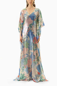 Printed Organza Dress With High Low Hem And Embroidered Straps