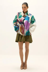 Embrace warmth and artistry with our pangong quilted jacket, crafted in our signature hand-painted floral print. Featuring two functional front pockets and a structured yet comfortable fit, it blends practicality with a touch of artisanal charm. The soft quilting adds cozy texture, making it a versatile layer for casual and breezy days.