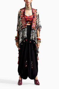 Elevate your look with the Multi Gray Veni Dupatta Jacket Set. Crafted from sheer silk, its anti-fit design features Resham thread embroidery, textured print, and tribal tassel accents on the neck and hem.