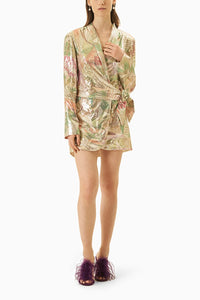 Tropical Leaf Printed Sequins Short Wrap Jacket Dress