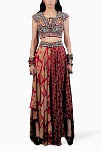 Experience grace with Multi Kamya blouse and Palazzo Set. Made from natural crepe, its relaxed fit features a stripe print and tribal beads detailing on the blouse.
