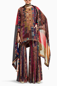 Multi Mitra Short Kurta with Trousers and Dupatta
