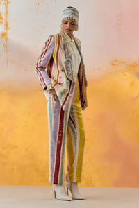 Multi Mural Noori Double Breasted Jacket with Shirt and Straight Trouser Set
