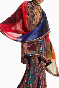 Featuring the Multi Patti Sheer Odhni from Aseem Kapoor's Beyond Ken-3 Collection. This sheer silk printed dupatta is adorned with intricate detailing of black and white beads and lace, adding elegance and sophistication to any ensemble.