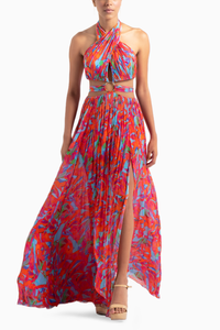 The Multi Printed Mesh dress is a dynamic and visually captivating ensemble that seamlessly blends a range of prints and patterns. The halter neck design adds a touch of sophistication, highlighting the shoulders and creating a flattering silhouette. The unique ring detail offers a bold and modern twist, making it a fashion-forward choice for those who want to stand out. With its mesh fabric, this dress combines sensuality with style, creating an alluring and trendy look. It's the perfect choice for those seeking to make a statement and exude confidence at any special occasion, as it embodies the vibrant energy of eclectic prints and contemporary design.