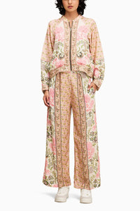 The Multicolor Mehr Print High-low Top features vibrant, eye-catching prints and delicate embroidery, creating a dynamic, fashion-forward look. Paired with straight satin pants, this ensemble combines elegance and comfort, making it a perfect choice for both day and evening occasions.