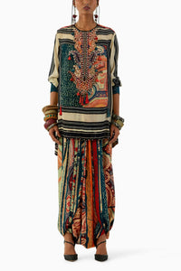 Multicolor Mitra Short Kurta and Drape Trouser Set