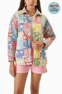 Featuring the Multicolor Patchwork Quilted Jacket by The PDKF Store. This jacket boasts an oversized fit with long sleeves, crafted from upcycled hand-block printed cotton fabrics. Each piece is unique with varying print placements.