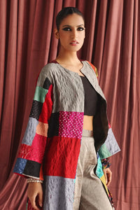 The Multicolor Recycled Long Jacket from the Rangrez collection by 29 India is a striking and eco-conscious piece. Rendered in a rich black hue, this jacket showcases exquisite Bandhani embroidery, crafted from luxurious Bandhani fabric. Designed to exude grace and sophistication, this tailored long jacket offers a unique blend of intricate craftsmanship and sustainable fashion.