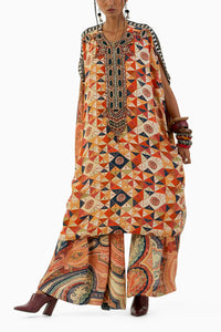 Multicolor Ritu Kaftan Tunic and Drape Trouser Set