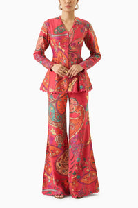 Multicoloured Peplum Top With Flared Pants