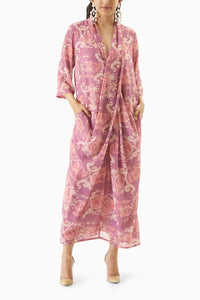 Featuring a printed multi-coloured cowl pleated kaftan dress with two front pockets and back slit. This dress is crafted in organic vegetable dye fabric.