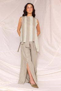 Composition: 100% Linen Color: Sage Green Fit: Relaxed Length: 42 inch Model Height: 5'9 Size Worn by Model: Small Components: 1 Product Code: SVENIRVLPNTVOL401