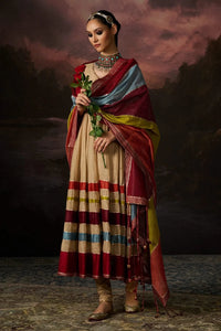 Featuring the Naira Multicolor Kurta Set by Swatti Kapoor’s Firdaus collection. This elegant ensemble includes a handwoven Chanderi kurta with a handwoven Chanderi border, paired with a 100% cotton slip, cotton lycra churidar, and a handwoven Chanderi dupatta. Finished with delicate hand embroidery for a graceful appeal.
