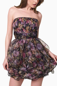 This strapless dress is the ultimate showstopper, blending elegance and charm for any occasion. Featuring a pleated bust, boned bodice, and built-in chest pads for a flattering fit, it’s designed to turn heads. The criss-cross tie-up at the back, adorned with pearl and gold bead charms, adds a stunning detail, while the ruffled skirt creates a feminine, flowing silhouette. With an invisible zip closure and fully lined interior, this dress promises both style and comfort, perfect for a cocktail party or a night out.