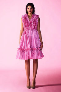 A ruffled heaven with our vibrant pink dress that features dramatic yet intricate ruffles all along the bodice and bottom. The dress is crafted in luxurious fabric that makes you feel like your best self. Let the dress do the talking with sleek hair, minimal jewels and coloured heels to match.