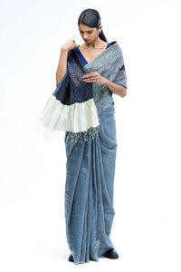 Fabric- 100% Silk Color- Navy-Grey (White) Components- 1 Product Code- SVEMEDI25F SHIFTER SAREENAVY-GREY (WHITE)