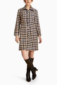 Navy Hounstooth Front Open Tweed Jacket Dress