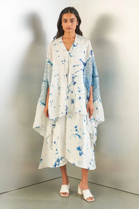 Featuring a free-size silk cape adorned with our signature shibori-dyed sleeves in rich navy, this piece blends timeless craftsmanship with a contemporary silhouette. Lightweight and fluid, it's an effortlessly elegant layer that transitions seamlessly from day to evening.