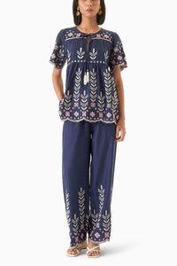 Fea turing the Na vy Picotin Co-ord Set by Miri Pret. Cra fted from a blend of 70% Linen a nd 30% Cotton, this coordina ted set embodies sophistica tion in a rich Na vy Blue hue.