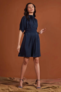 Tailored in fine silk crepe our high neck pleated dress is one of tara and i's signatures. Featuring a pleated detail along the neckline this flattering silhouette comes with a belt. We recommend pairing this with simple stiletos for maximum impact.