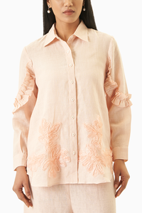 Introducing our exquisite Needle Palm Shirt, meticulously crafted from linen. This straight-fit shirt features intricate embroidery and frill details on the sleeves, adding a touch of elegance to your wardrobe. Perfect for those seeking sophisticated style with a modern twist.