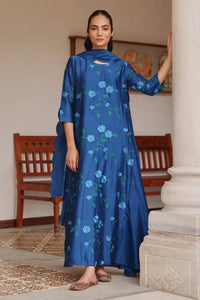 Step into festive elegance with the Indigo Bloom Anarkali Set, crafted in a vibrant, deep shade that shines in every celebration. Its flowing silhouette sways with your every move, adorned with delicate floral embroidery and finished with a scalloped-edge dupatta.