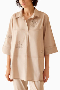 Our Neela Tunic is a timeless favorite for rising temperatures. This A-line tunic, crafted from 100% cotton poplin, features Chintz-inspired motifs and pintuck details for a sophisticated touch. The classic shirt collar and flattering length, paired with matching narrow pants, make it a versatile and crowd-pleasing choice for all ages.